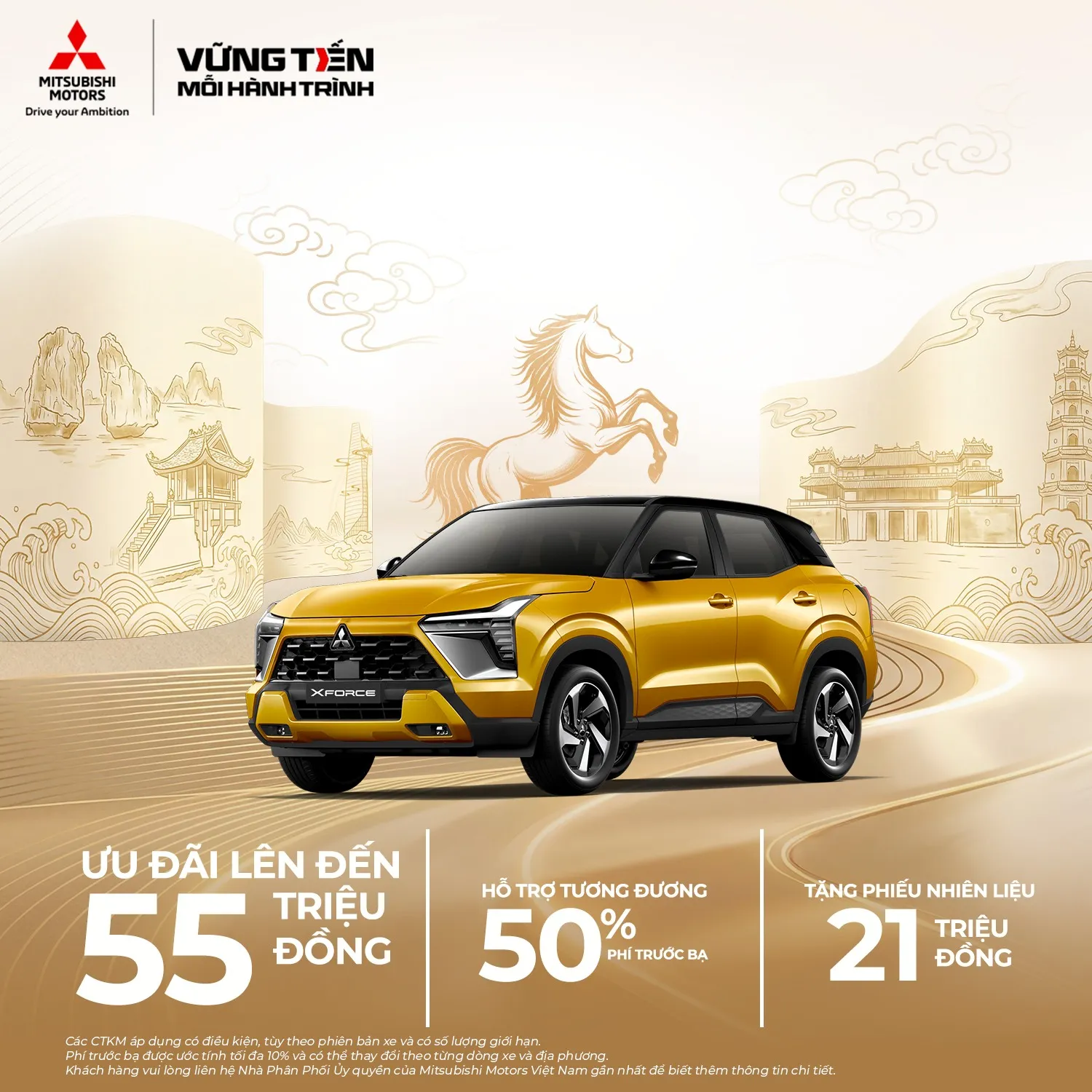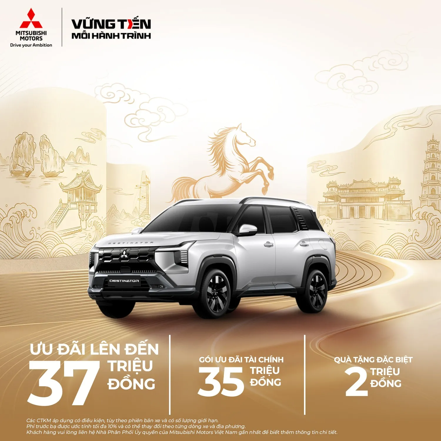 Trong tháng 03/2026, Mitsubishi Biên Hòa Đồng Nai triển khai chương trình ưu đãi lên đến 100% lệ phí trước bạ, cùng nhiều quà tặng giá trị dành cho khách hàng mua xe Destinator, Xpander, Xpander Cross, Xforce, Attrage và All New Triton.